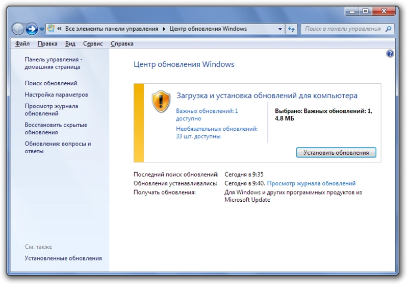 Центр обновления Windows — это услуга, предоставляемая Microsoft, которая обеспечивает обновления для операционных систем Microsoft Windows и его компонентов, включая Internet Explorer. Обновления предоставляются не только для операционной системы и Internet Explorer, но и также для другого программного обеспечения Microsoft, такого, как Microsoft Office, Windows Live, Microsoft Security Essentials и Microsoft Expression Studio.